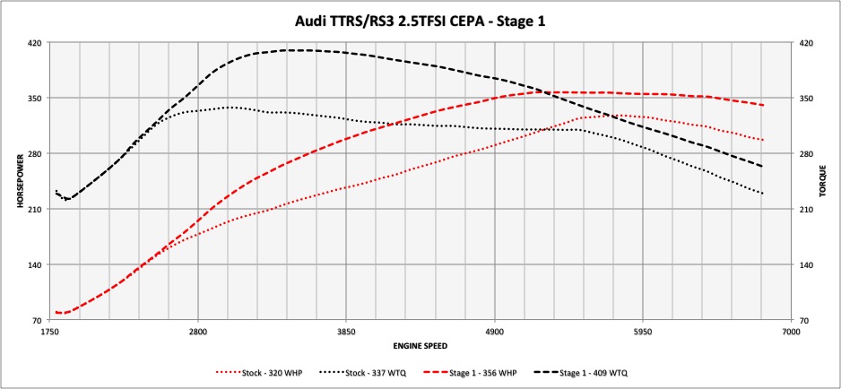 Our TTRS Software development posed many challenges, while the Bosch MED9 ECU that runs this vehicle is something we’re extremely familiar with, the 2.5TFSI engine is a very unique power plant. Through our research we were able to identify and conquer the potential issues that could stand in the way of our ultimate goal to build a reliable product that creates horsepower and torque in the top of it’s class.
